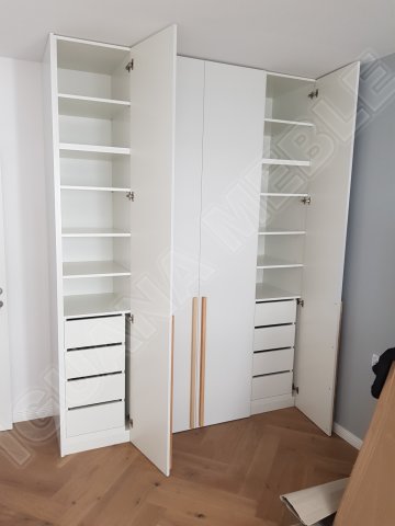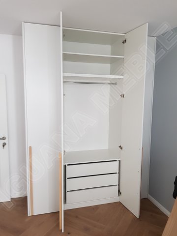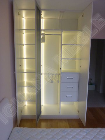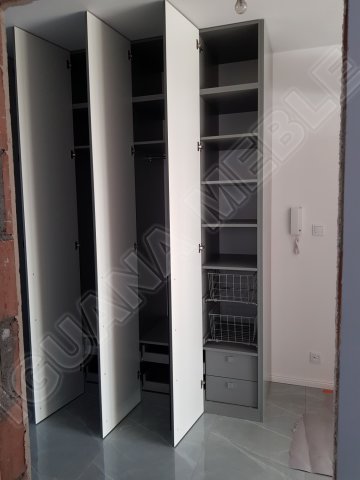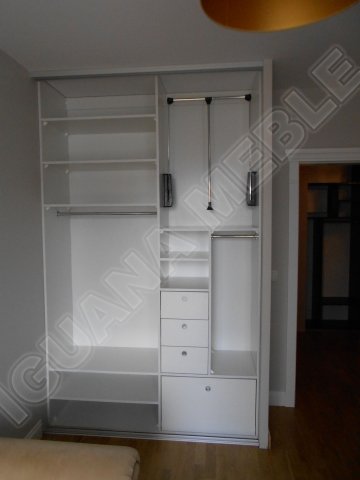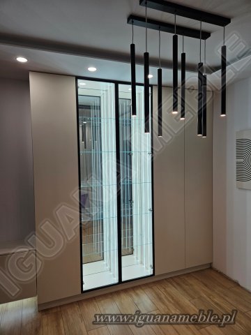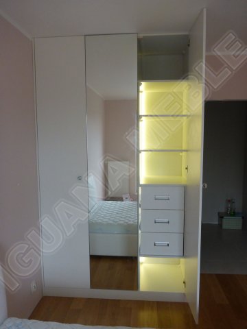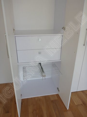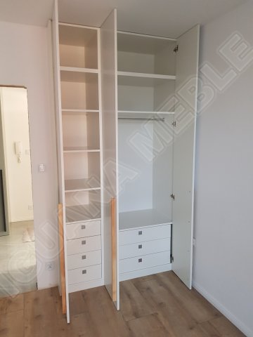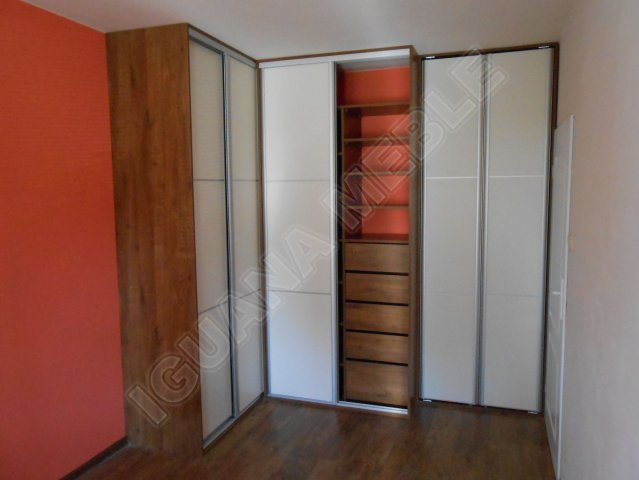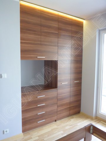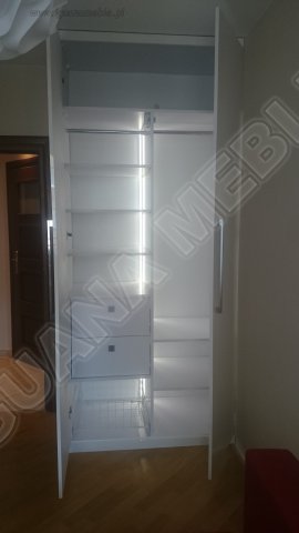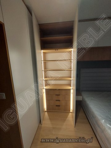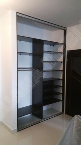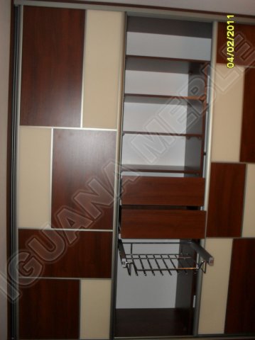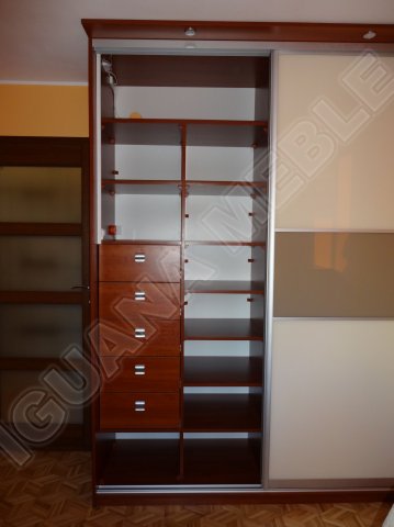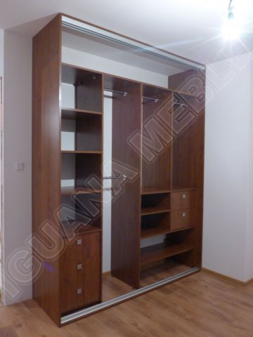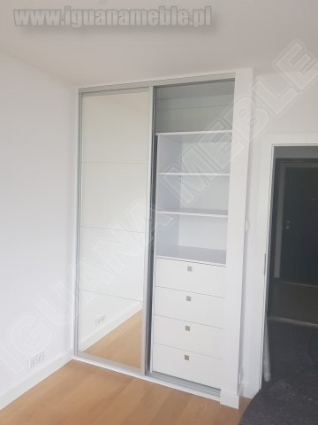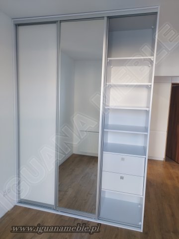 W szafach wnękowych wykorzystujemy profile do systemów drzwi przesuwnych sprawdzonych i uznanych firm. Są to profile stalowe lub aluminiowe w bardzo różnorodnej gamie kolorystycznej. Jako wypełnień używamy płyt laminowanych, różnego koloru luster, szkła, rattanu, bambusa i wiele innych materiałów. Staramy się aby przestrzeń zabudowana była jak najlepiej zagospodarowana.